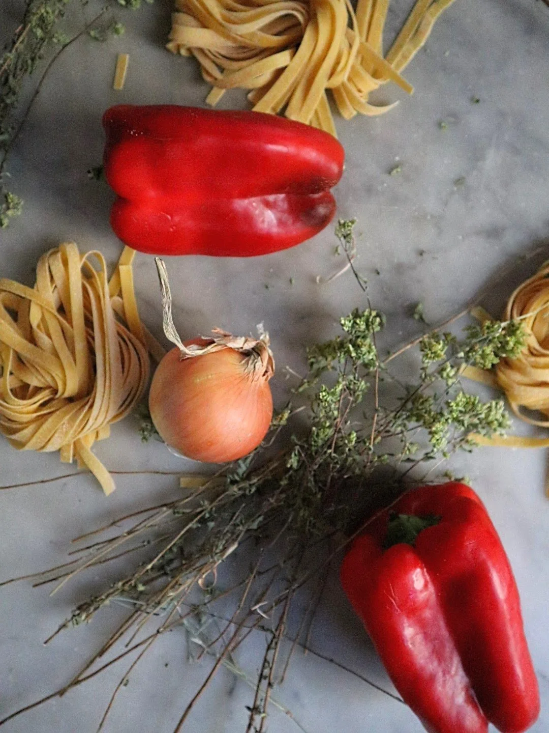 Shockingly there are zero tomatoes in this ragu, relying on the roasted/grilled pepper as the main sauce flavor that pairs so nicely with sausage. I use a stovetop grill since I live in an urban apartment but feel free to use your outdoor grill or take a shortcut by using jarred roasted peppers.