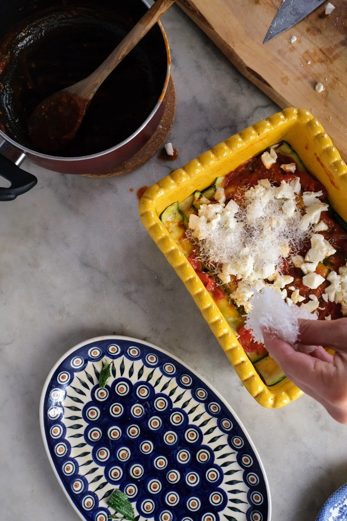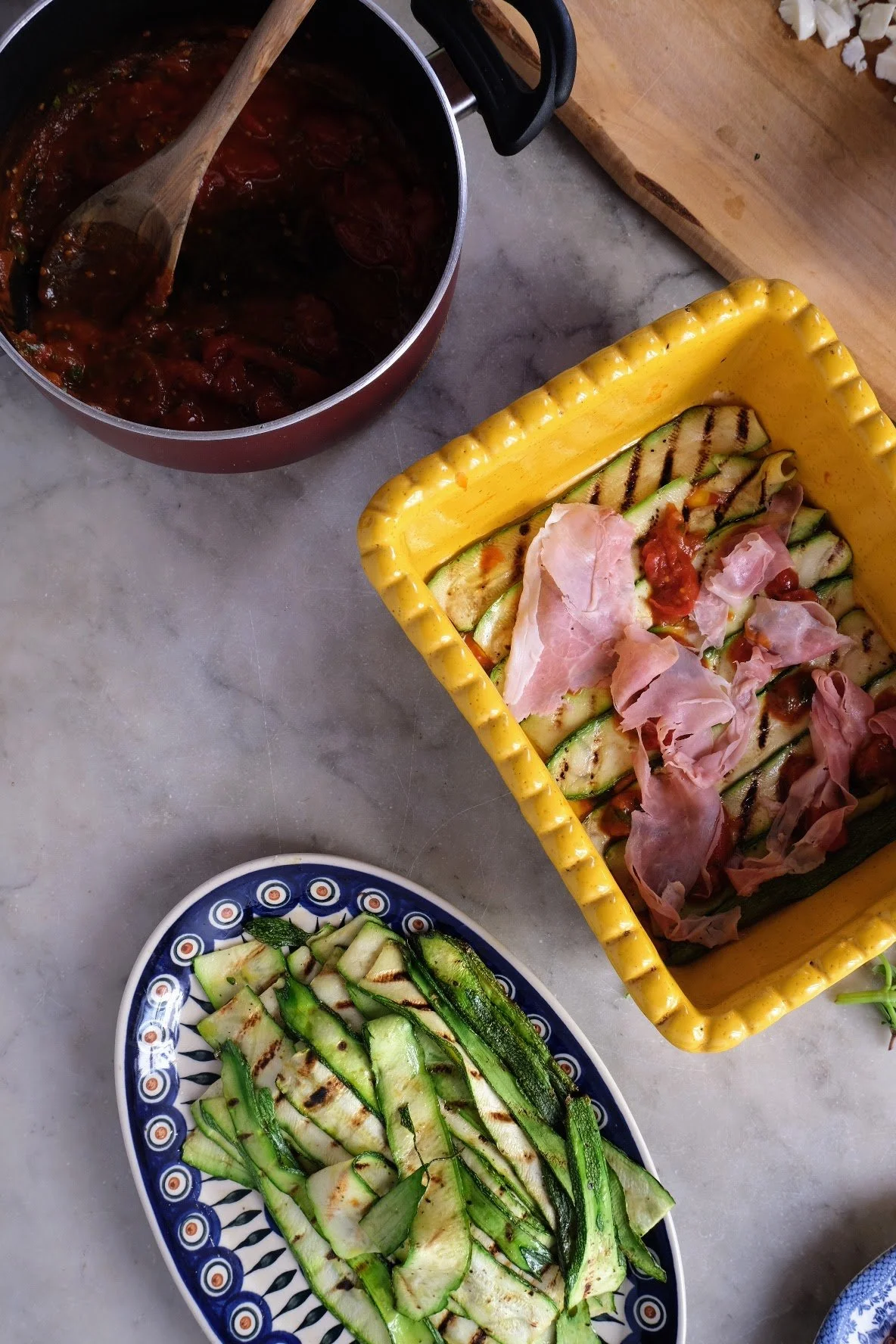 Repeat layering, and change the direction of the zucchini to create structure